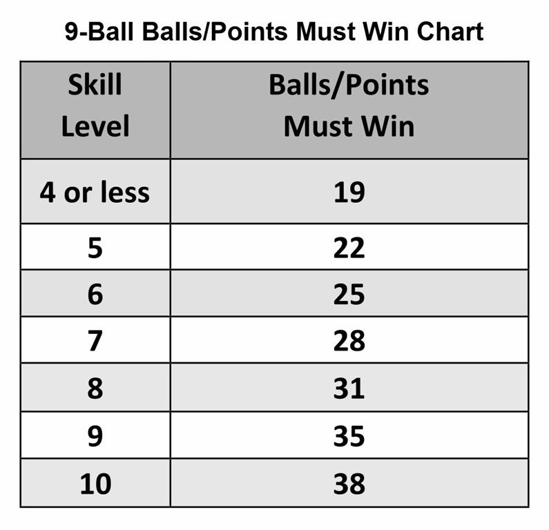 - All players must be on an active 9-Ball team with 20 (twenty) 9-Ball matches played in the last 2 years by the date of the qualifier. Players are responsible for checking this requirement in Member Services under Stats.